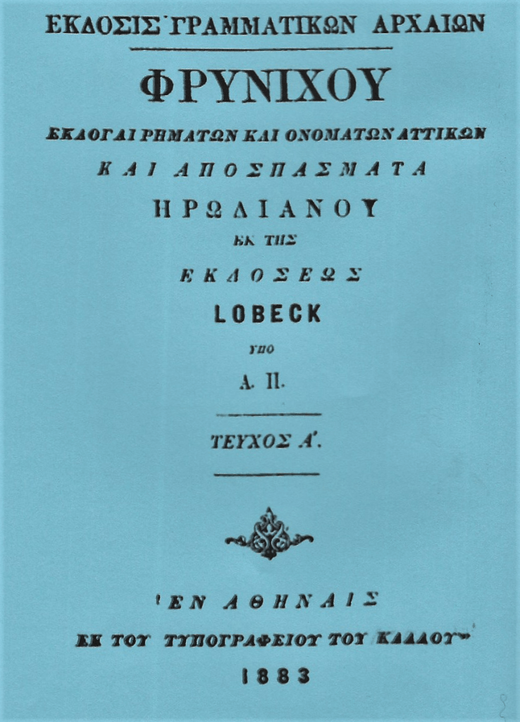 ΦΡΥΝΙΧΟΥ ΑΤΤΙΚΙΣΤΗ – » Εκλογαί ρημάτων και ονομάτων Αττικών ».