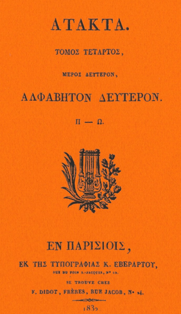 ΑΔ.ΚΟΡΑΗ – » Άτακτα » { τομ. Δ’ .σελ. 581-582 }.