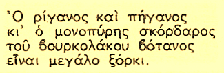 ΠΗΓΑΝΟΝ ,το φάρμακον κατά της βασκανίας , » ίνα μη βασκάνης με ».
