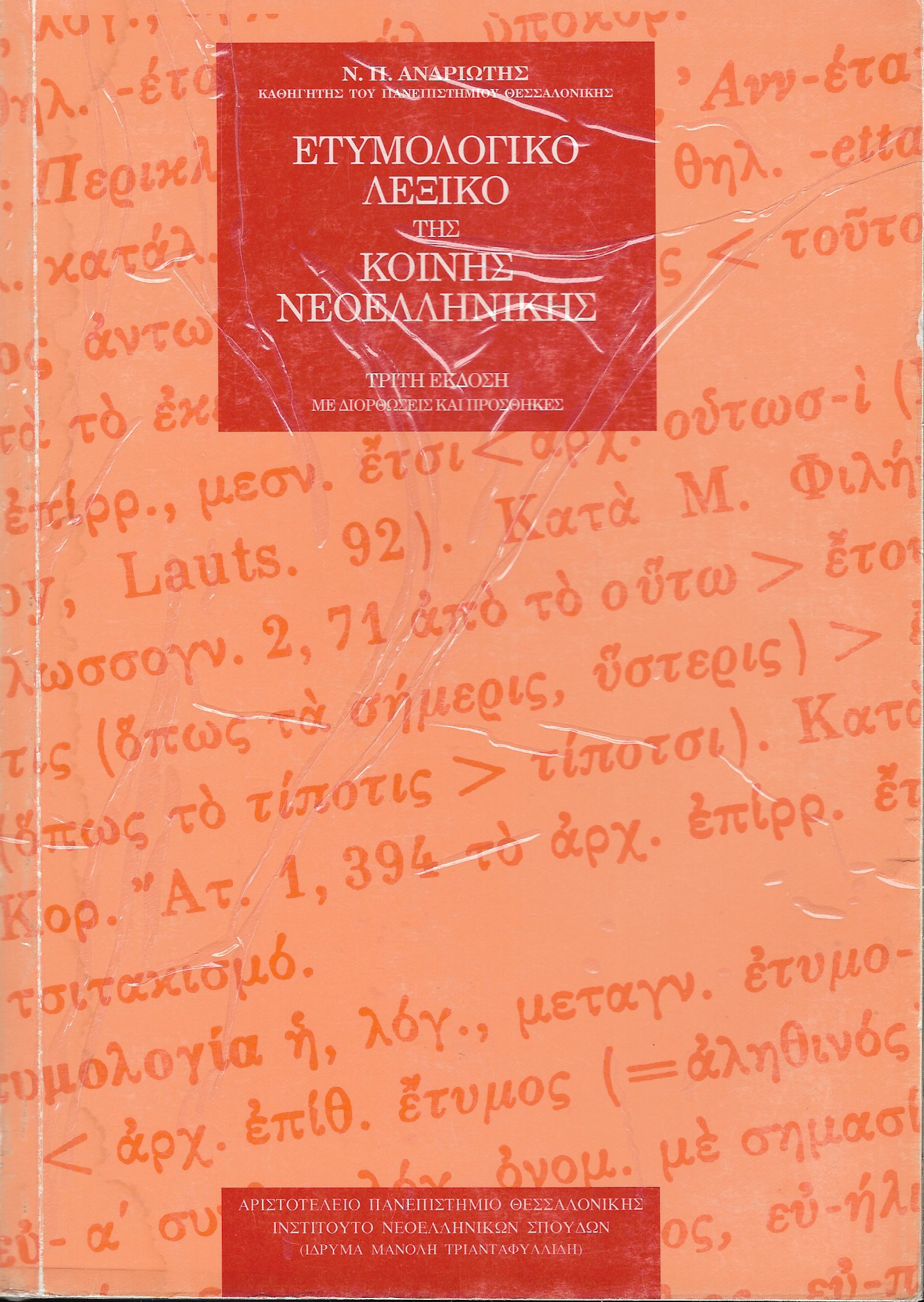 Γ.ΜΠΑΜΠΙΝΙΩΤΗ – » Ετυμολογικό Λεξικό της νέας Ελληνικής γλώσσας ».