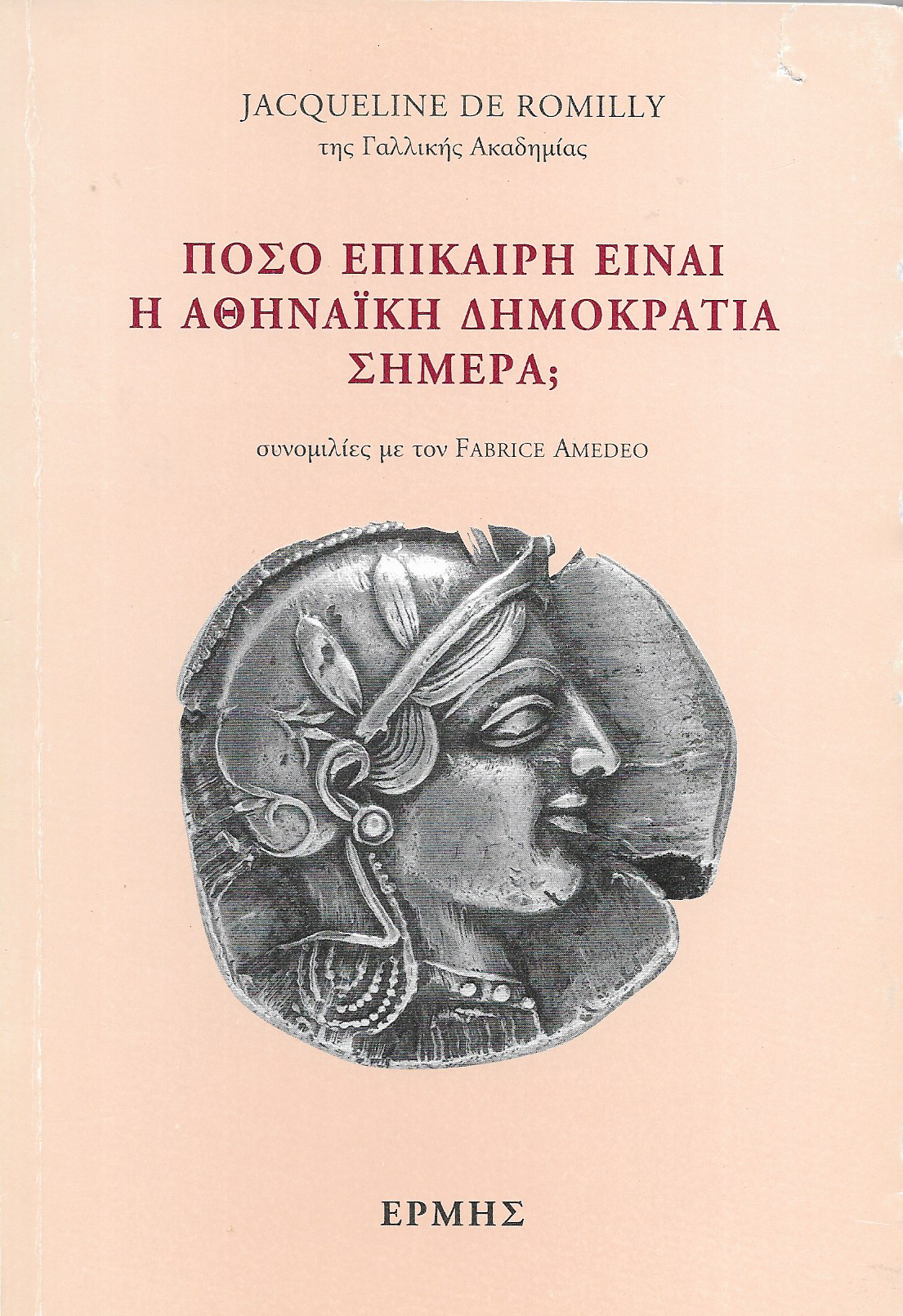 JAQUELINE DE ROMILLY – » Πόσο επίκαιρη είναι η Αθηναϊκή Δημοκρατία σήμερα ; », { οπισθόφυλλο }.