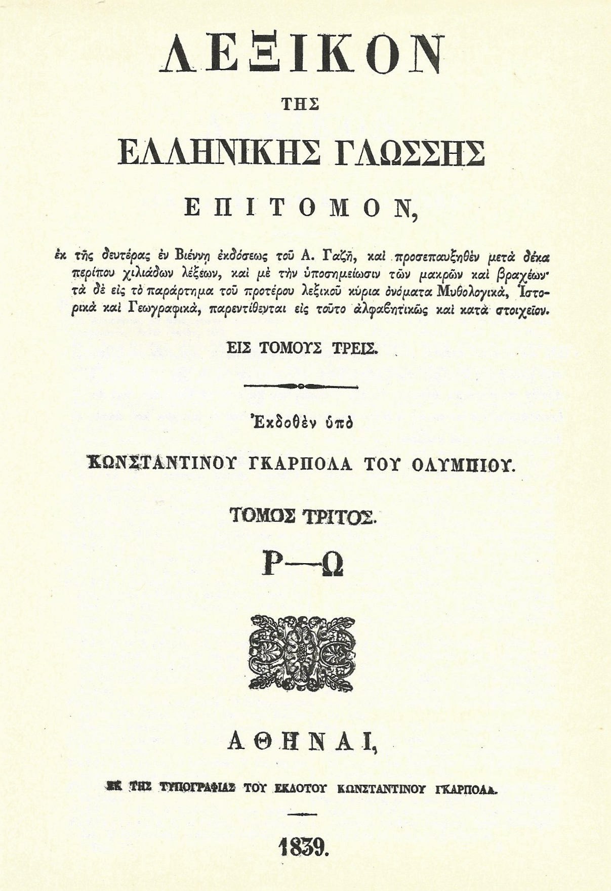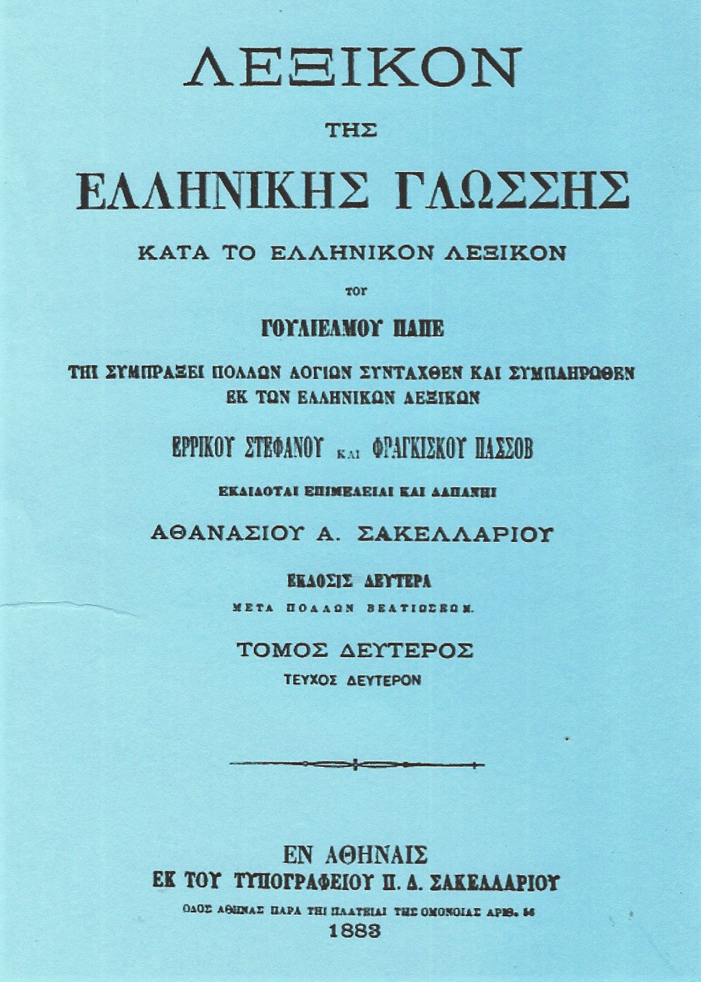 LIDDELL & SCOTT – » Μέγα λεξικόν της Ελληνικής γλώσσης ».
