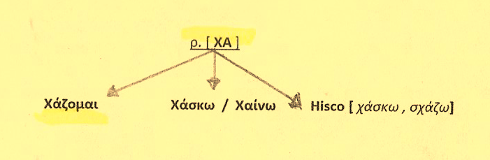 Από ρ. *[ ΧΑ ] : Χάζομαι , Χαίνω ή Χάσκω.