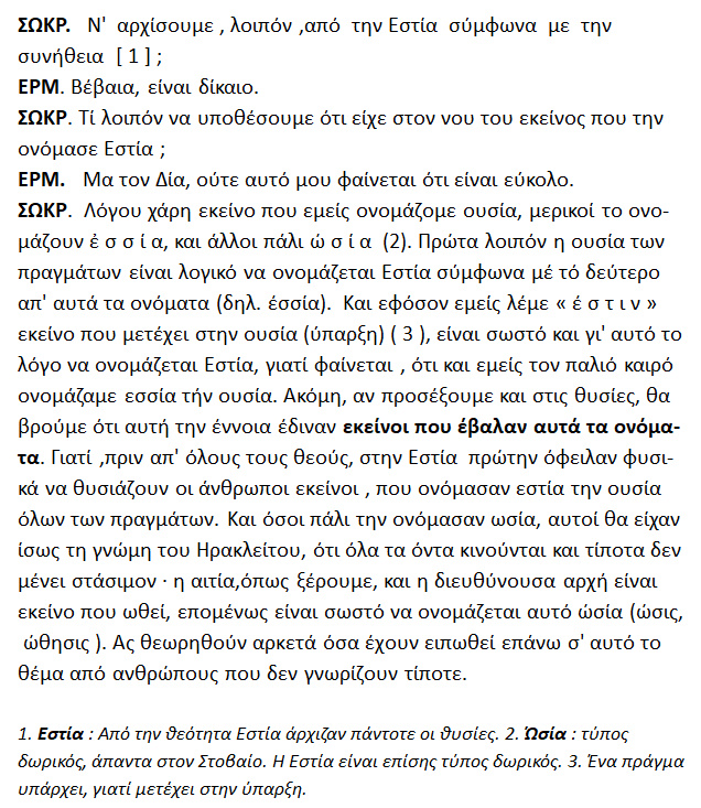 ΠΛΑΤΩΝΟΣ – » Κρατύλος » , { 401 a -e }.