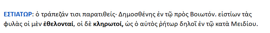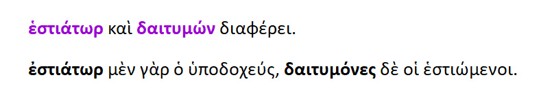 Εστιάτωρ { ο υποδοχεύς των καλεσμένων } και δαιτυμών {οι εστιώμενοι, οι καλεσμένοι}.