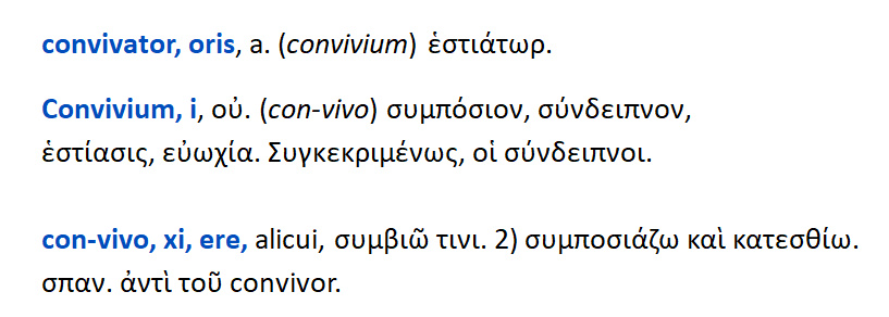 Convivator { < convivium < con-vivo } : εστιάτωρ.