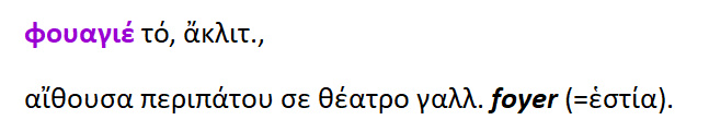 Φουαγιέ {< foyer } = εστία.