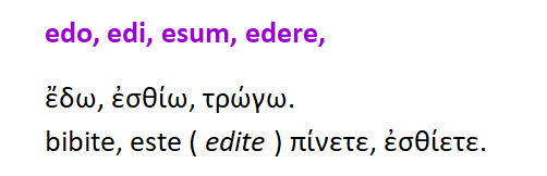edo , edi , esum , edere = έδω ,εσθίω, τρώγω .