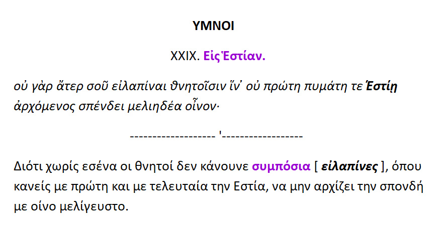 Δ.ΠΑΠΑΔΙΤΣΑ – Ε.ΛΑΔΙΑ – » Ομηρικοί ύμνοι »,[29]. ‘Εις ‘Εστίαν’ .