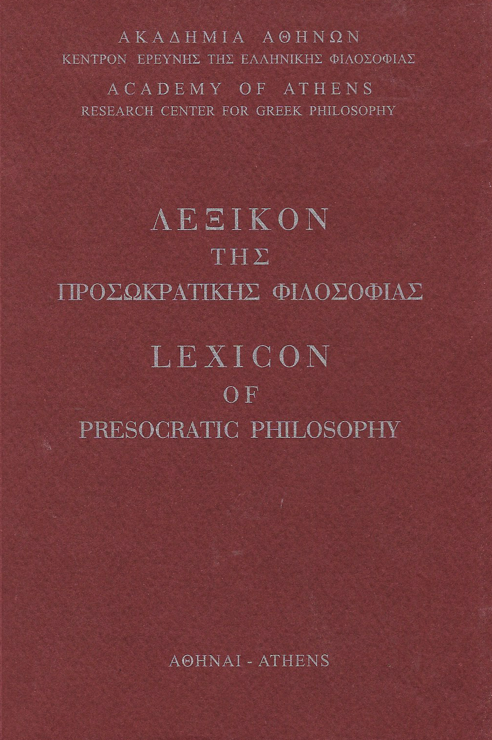 ΑΚΑΔΗΜΙΑ ΑΘΗΝΩΝ – » Λεξικόν της Προσωκρατικής Φιλοσοφίας ».