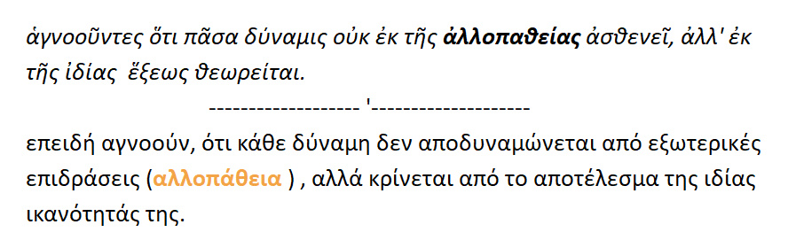 Δεν ασθενεί κάθε δύναμη από την κατάσταση της αλλοπαθείας .