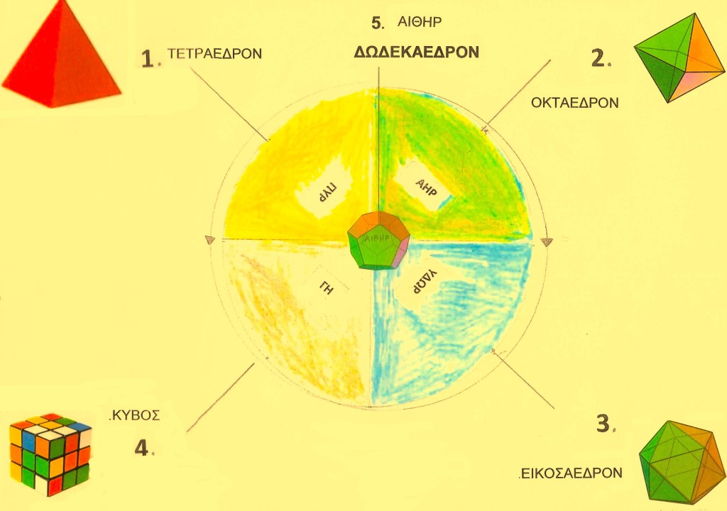 Πέμπτη Τετρακτύς { των σχημάτων των απλών σωμάτων : ΠΥΡΑΜΙΣ – ΟΚΤΑΕΔΡΟΝ – ΕΙΚΟΣΑΕΔΡΟΝ – ΚΥΒΟΣ }.