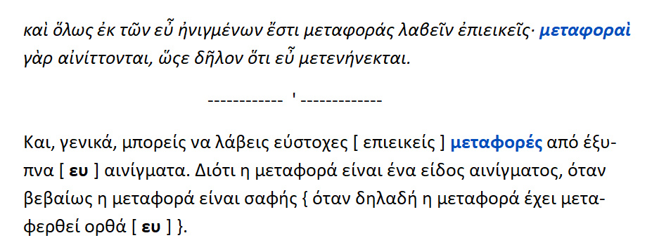 Η μεταφορά είναι ένα είδος αινίγματος ,όταν αυτή είναι σαφής, και η μεταφορά έχει μεταφερθεί ορθά [ ευ ].