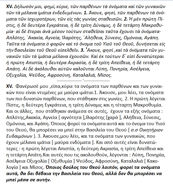 ΕΡΜΑ – » Ποιμήν », { Παραβολή Θ’ . XV ,i-iii }.
