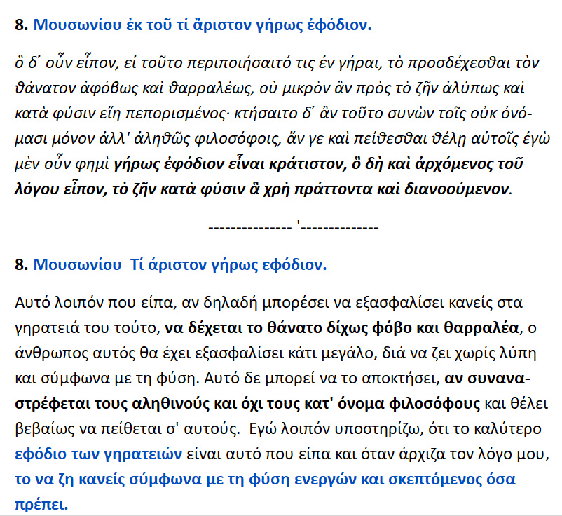 8. Μουσωνίου Ρούφου από το » Τί άριστον γήρως εφόδιον ».