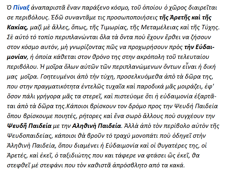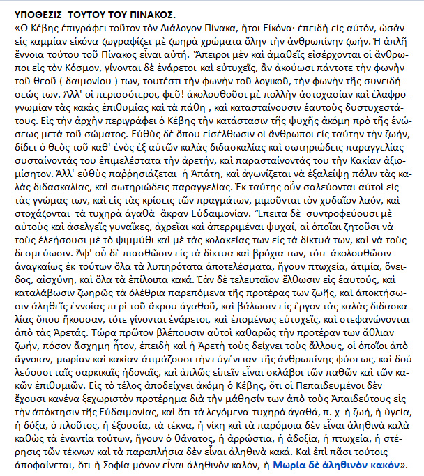 { Απομαγνητοφώνηση ομιλίας της συγγραφέως και διαπρεπούς Άννης Χ. Μαρκοπούλου { Δρ. Φιλοσοφίας της Παιδείας του Παν. Σορβόννης },στο εκλεκτό διαδικτυακό κανάλι »Φρυκτωρίες », με εισαγωγή από τον ειδήμονα αρχαιολόγο και εκδότη του βιβλίου »Κέβητος πίναξ » Ευ. Μπεξή , βεβαίως μετά των απαραιτήτων από πηγές συμπληρωμάτων }.