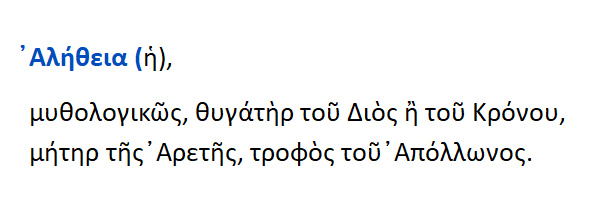 Η θεά Αλήθεια : κόρη του Διός ή του Κρόνου ,μητέρα της Αρετής.