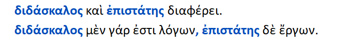 Διαφέρει ο Επιστάτης [ σχετίζεται με τα έργα ] από τον διδάσκαλον [ σχετίζεται με τον λόγο ].