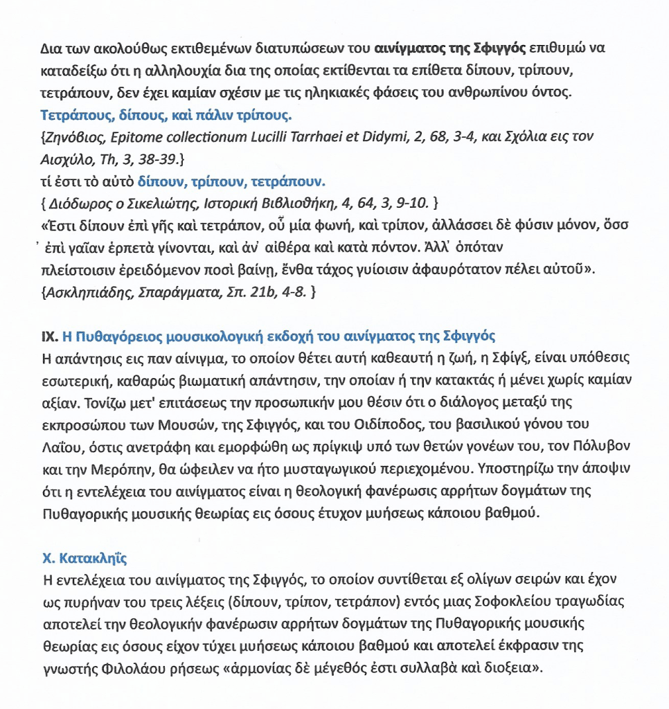 ΧΑΡ. Χ. ΣΠΥΡΙΔΗΣ – » Αίνιγμα Σφιγγός ».