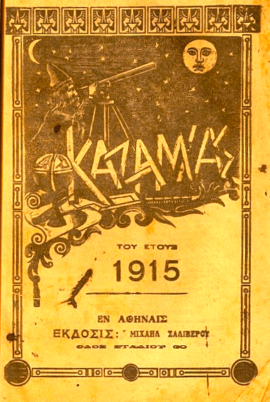 Από τα πιο δημοφιλή λαϊκά ημερολόγια του 19ου αι. ποικίλης ύλης .Περιλαμβάνει φαινόμενα αστρονομικά , μετεωρολογικά, γεωργικά κ.ά. ,αλλά ήταν ιδιαίτερα ξεχωριστό για τις προβλέψεις του .Όλοι στην παλιά Αθήνα και ύστερα σε όλη την Ελλάδα, την Πρωτοχρονιά έτρεχαν να αγοράσουν το << προφητικό ημερολόγιο >> , που είχε τον τίτλο << Καζαμίας>> , για να διαβάσουν με αδημονία και περιέργεια τις προβλέψεις του !