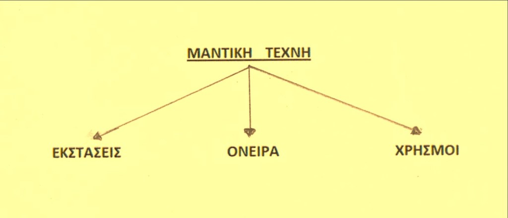 Μαντική . Έτσι ονόμασαν οι Έλληνες το χάρισμα ή την τέχνη της μαντείας .Οι αρχαίοι πίστευαν στην ιδέα ,ότι είναι δυνατόν να αποκαλυφθεί τί κρυβόταν ή τί επρόκειτο να συμβεί . Η πίστη αυτή αναπή-δησε από την ιδέα ,ότι οι Θεοί ,όταν τους ικέτευαν με την προσευχή ή ακόμη και χωρίς ικεσία ,έκαναν αποκαλύψεις στους ανθρώπους με άμεσο τρόπον ή με σημεία ,που απαιτούσαν ερμηνεία. Γι’ αυτό υπήρχε διάκριση μεταξύ Φυσικής και Τεχνικής μαντικής. Φυσική μαντική είναι , όταν ένας άνθρωπος δέχεται την έμπνευση της Θεότητας σε όνειρο ή σε κατάσταση εκστάσεως .Η πίστη στη θεία έμπνευση ,που υπάρχει στα όνειρα ανάγεται σε αρχαιοτάτους χρόνους και εξακολούθησε να ισχύει ακόμη και όταν εξακριβώθηκαν τα αίτια των ονείρων. Το νόημα των προφητικών ονείρων δεν μπορεί να γίνει άμεσα κατανοητό ,διότι τα όνειρα είναι συνήθως συμβολικά και απαιτούν ερμηνεία .Τα όνειρα ,που έβλεπε κάποιος όταν κοιμόταν σε ιερά μέρη, και τα οποία θεωρούσαν πάντα προφητικά , χρειάζονταν συνήθως έναν ιερέα για να τα εξηγήσει .