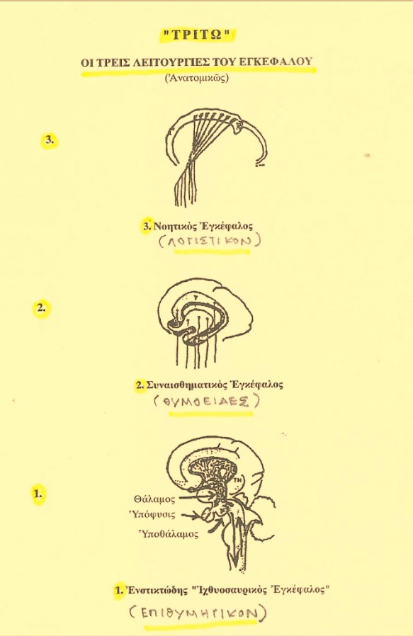 H Tριτώ : [ [αιολ. ] τριτώ = η κεφαλή } . Τριτογένεια ονομάζεται θεά Αθηνά ,η κατ’ εξοχήν θεά της σκέψεως και της Σοφίας ,επειδή γεννήθηκε από την κεφαλή του Διός . Τριτή είναι και η λειτουργία του εγκεφάλου { Νόησις, Θυμικόν – Συναισθηματικόν , Τροφικόν Ενστικτώδες } .Σοφία είναι, η εναρμόνιση των τριών αυτών λειτουργιών, όπως και η εναρμόνιση των τριών μερών της ψυχής .