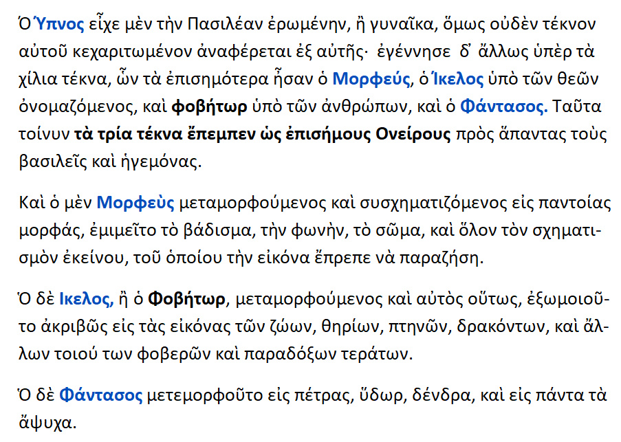 Oneiros , oniros όνειρος , ο θεός των ονείρων [ Μυθολ. ] < Όνειρος ο θεός των ονείρων.