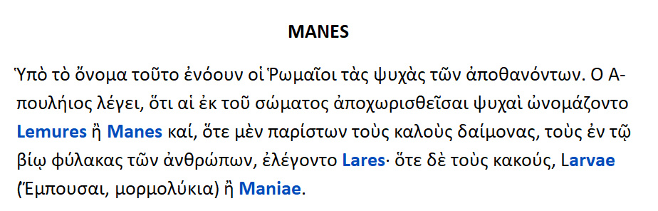 Manes ή Lemures : οι ψυχές των αποθανόντων .