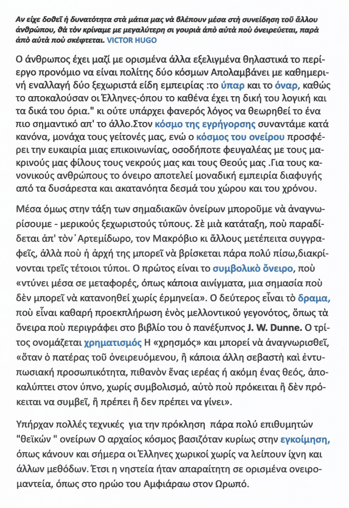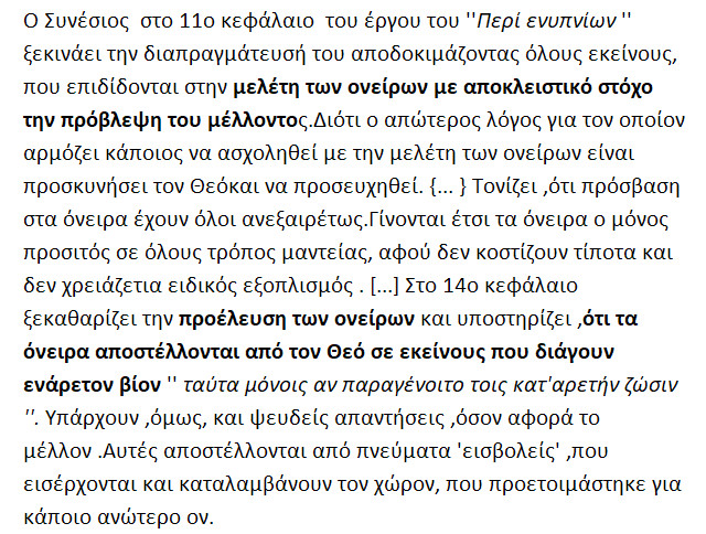 Μ. ΚΟΥΝΤΗ – » Συνέσιος ο Κυρηναίος », [ σελ. 89-90 ]. 6. Περί ενυπνίων.