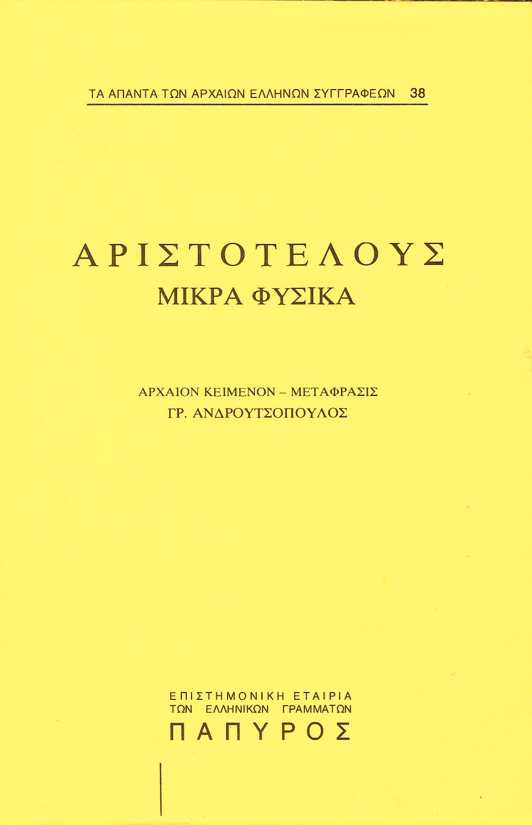 Κ. Π. ΣΤΑ’Ι’ΚΟΥ – » Αριστοτέλους Βιβλιοθήκη », { σελ. 175 }. Τα Μικρά Φυσικά .