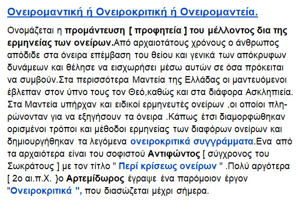 Ονειρομαντική ή Ονειροκριτική ή Ονειρομαντεία .Ονομάζεται η προμάντευση [ προφητεία ] του μέλλοντος δια της ερμηνείας των ονείρων.