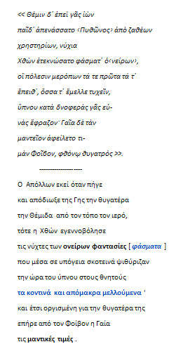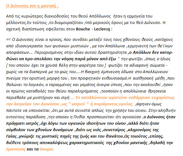 Ο Απόλλων ,εκτός των άλλων του ιδιοτήτων ,είναι θεός της Μαντικής τέχνης [ όπως βέβαια και ο Δίας ο Σημαντικός ,που στέλνει Διοσημίες ] και ,συνδέεται με τα σήματα . . Αυτός που ξέρει να συνδέει τις αιτίες μεταξύ τους σε ένα και να τις συμπλέκει σύμφωνα με την φύση γνωρίζει και προλέγει ‘τα όσα είναι ,τα όσα θα είναι και τα πριν από αυτά που είναι’ . { σ.σ. ο χρόνος είναι ένας ,ενιαίος και αδιάσπαστος . Ο άνθρωπος χώρισε τον χρόνο. }