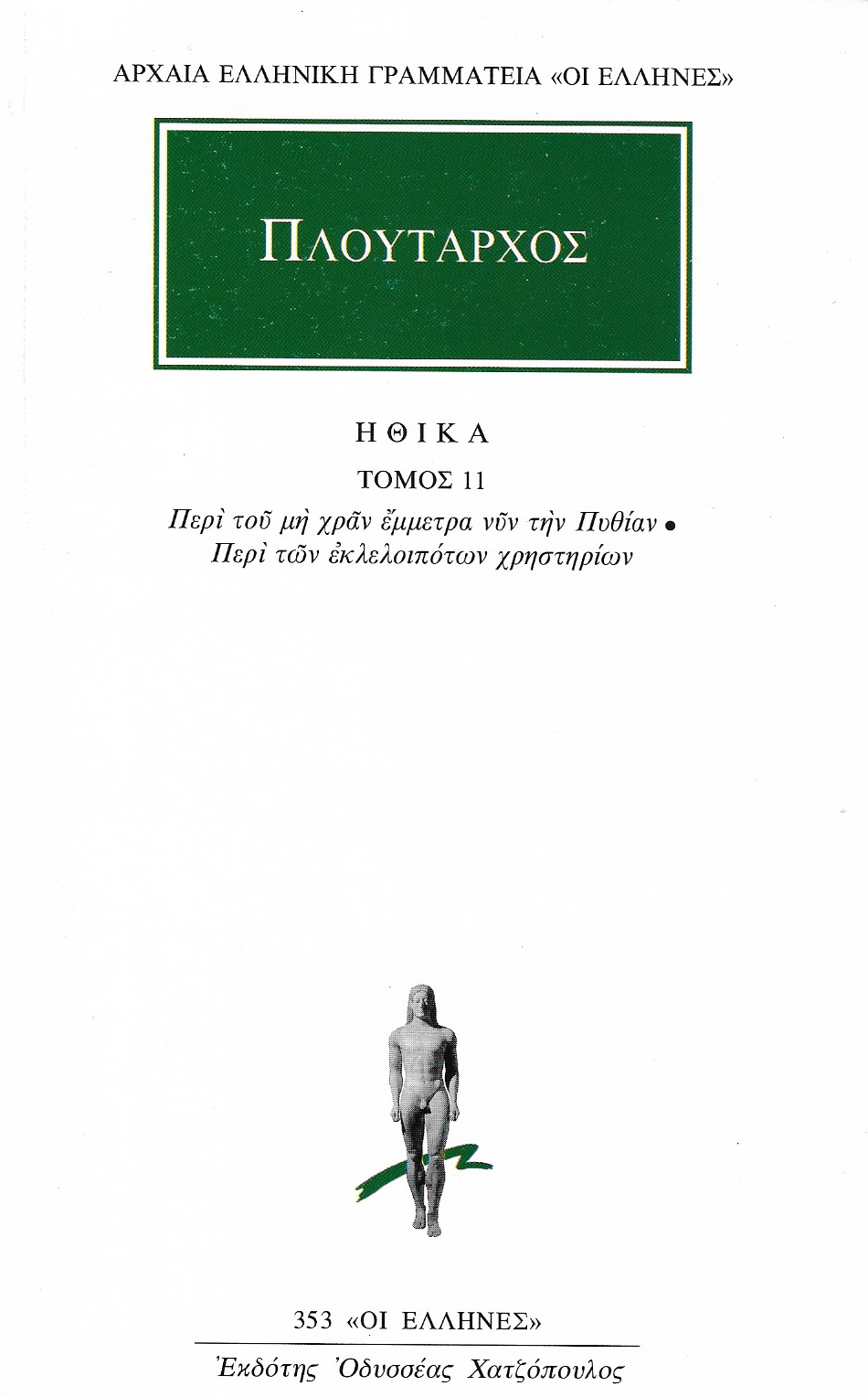 ΠΛΟΥΤΑΡΧΟΥ – » Περί του μη χραν έμμετρα νυν την Πυθίαν», { 398 F- 399 A }.