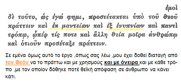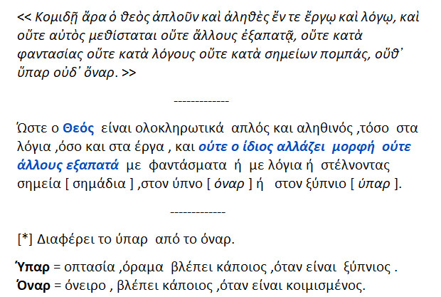 β }. Τις αμφιβολίες του περί της θείας προελεύσεως των ενυπνίων. Δεν έρχονται, εκ θεoύ.
