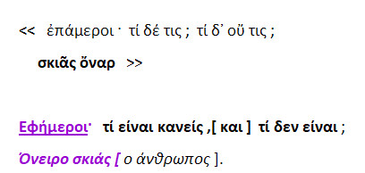 << σκιάς όναρ άνθρωπος >>. Σκιά ονείρου ο άνθρωπος.