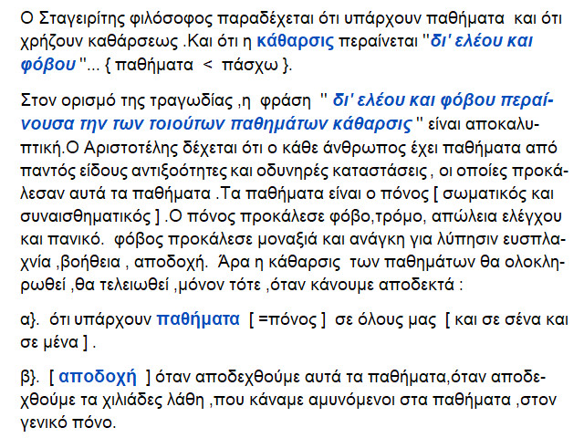Α. ΤΖΙΡΟΠΟΥΛΟΥ – ΕΥΣΤΑΘΙΟΥ / ΧΡ. ΚΩΣΝΤΑΝΤΟΠΟΥΛΟΥ – » Τραγωδία Αριστοτελική κάθαρσις », { σελ. 36-37 }.