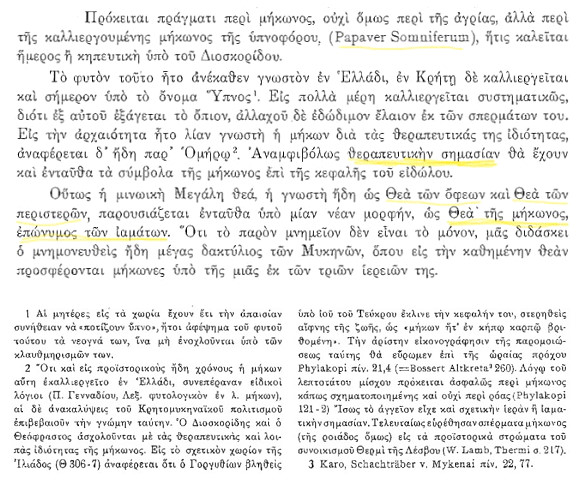 Μήκων η υπνοφόρος ή Ύπνος . Η Μινωική Μεγάλη θεά ή Θεά των όφεων ή Θεά των περιστερών παρουσιάζεται με μια νέα μορφή ως Θεά της μήκωνος , επώνυμος των ιαμάτων.