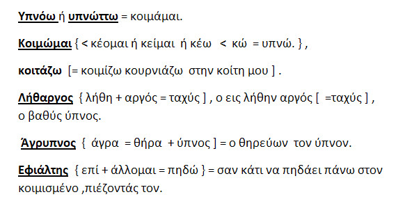 Υπνόω ή υπνώττω , κοιμώμαι , κοιτάζω , λήθαργος , άγρυπνος , εφιάλτης