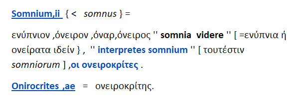 Οnirocritas ,ae = ονειροκρίτης. » interpretes somnium » [ τουτέστιν somniorum ] ,οι ονειροκρίτες.