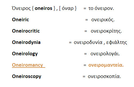 Somnus = ύπνος. Οneiromancy = ονειρομαντεία.