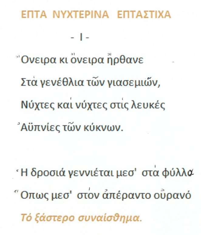 »Επτά Νυκτερινά Επτάστιχα », { I }.