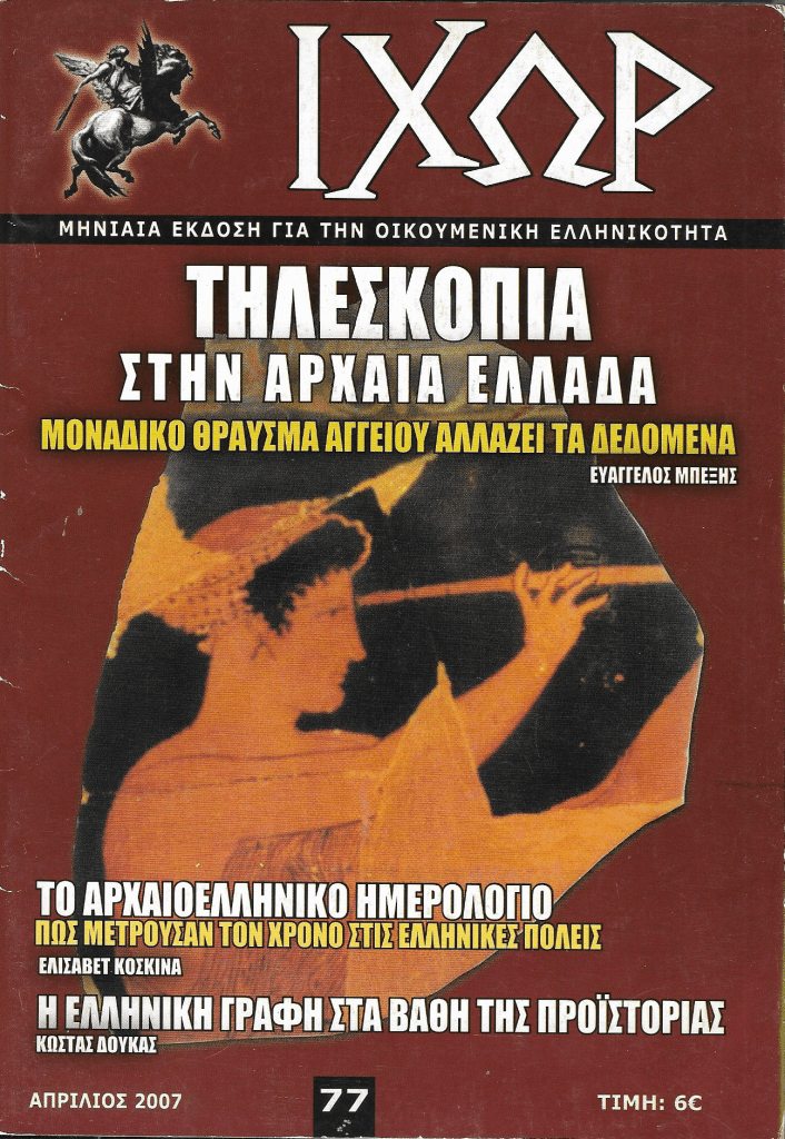 ΙΧΩΡ [ 77 ] – » Τηλεσκόπια στην Αρχαία Ελλάδα », { σελ. 12 }.