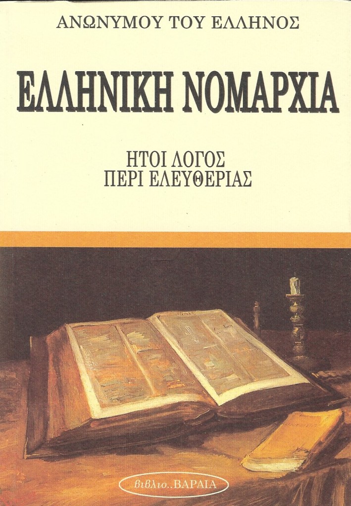ΑΝΩΝΥΜΟΥ ΤΟΥ ΕΛΛΗΝΟΣ – » Ελληνική Νομαρχία », { σελ. 69 }.