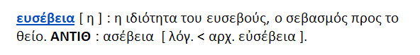 Ευσέβεια : ο σεβασμός προς το Θείον. ΑΝΤ. Ασέβεια.