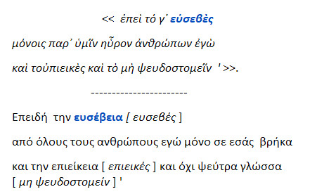 Επειδή την ευσέβεια [ to ευσεβές ] από όλους τους ανθρώπους εγώ μόνο σε εσάς βρήκα