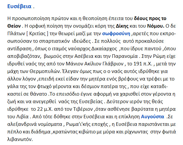Ευσέβεια : η προσωποποίηση πρώτον και η θεοποίηση έπειτα του δέους προς το Θείον .