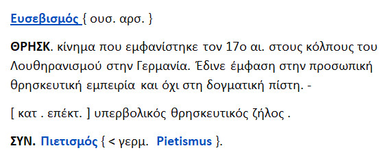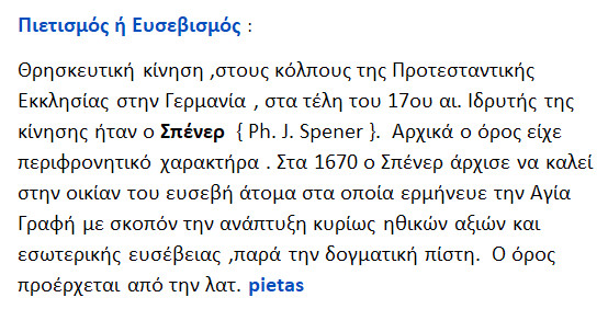 Ευσεβισμός ή Πιετισμός {< γαλλ. pietisme < λατ. pietas = ευσέβεια , θεοσεβής φόβος ,δικαιοσύνη ,πραότητα, χάρη } .