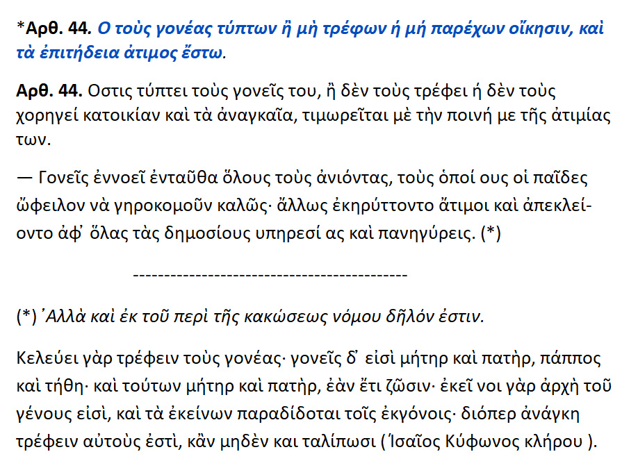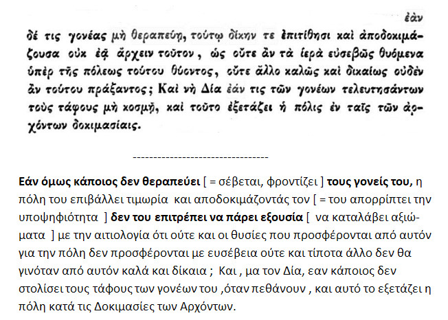 ΑΘ. ΣΤΑΓΕΙΡΙΤΟΥ – » Ωγυγία ή Αρχαιολογία », [ Β’ ] . Περί των Ολυμπίων Θεών , { σελ.231 }. Περί του Απόλλωνος. Η προς τους γονείς ευσέβεια. Στον ναόν των Δελφών ,άνωθεν της Κασσωτίδος πηγής ήταν ένα οίκημα ,η Λέσχη , η οποία είχε ζωγραφιές του Πολυγνώτου . Η ζωγραφική περιείχε δύο σκηνές : την άλωση της Τροίας στα δεξιά και τον Άδη στα αριστερά …. Όπου κοντά στις όχθες του ποταμού Αχέροντα κάποιος πατέρας πνίγει το υιόν του , επειδή συμπεριφέρθηκε ασεβώς προς τους γονείς του { * } .