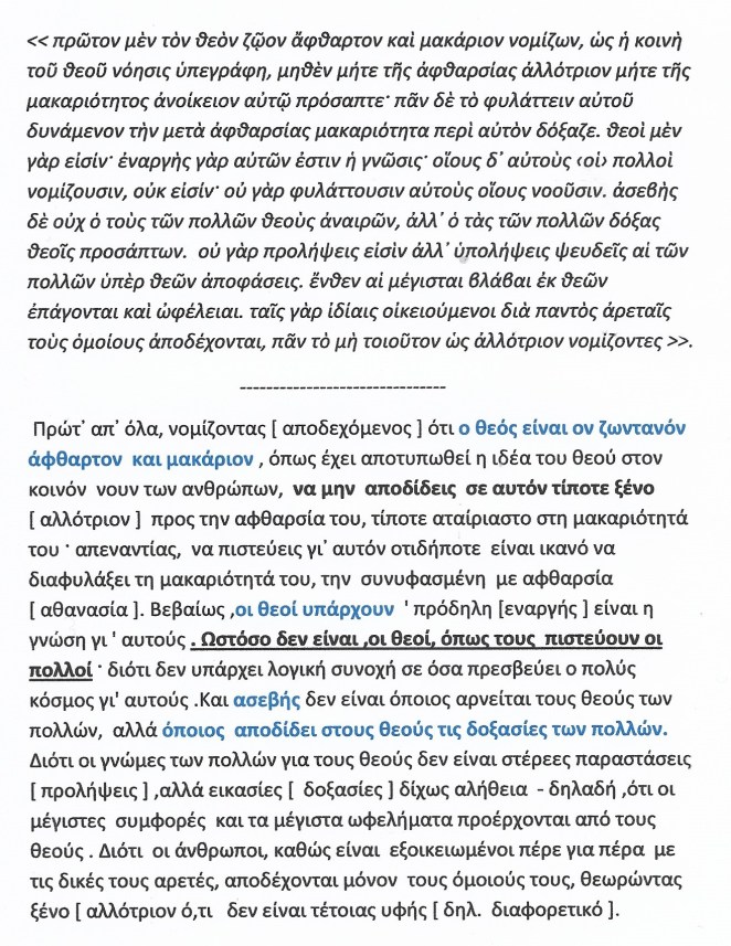 ΕΠΙΚΟΥΡΟΥ – » Επιστολή προς Μενοικέα » , { 123-24 }.