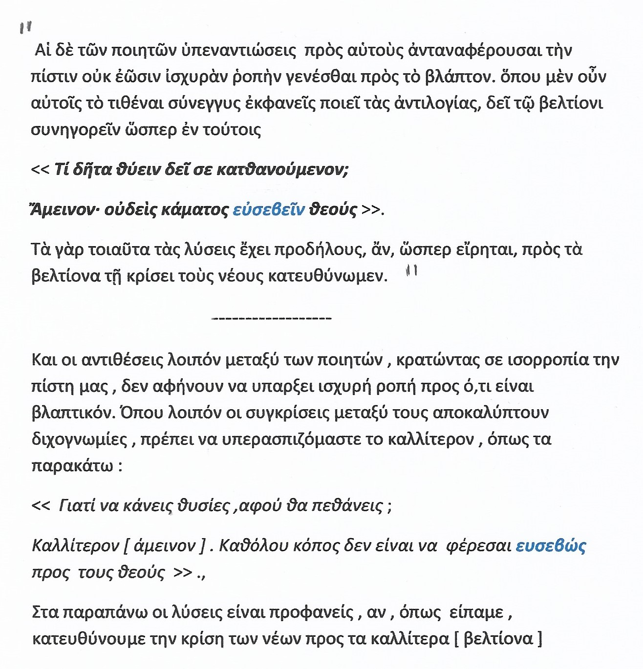 ΠΛΟΥΤΑΡΧΟΥ – » Πώς δει τον νέον ποιημάτων ακούειν », { 20 C- D }.